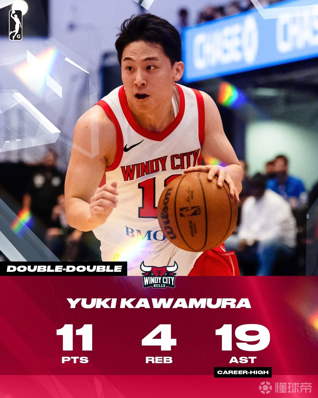 河村勇辉G联赛20中4得到11分4板,单场19次助攻刷新队史纪录
