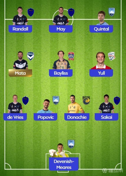 澳超第19周最佳阵容前锋:兰达尔(奥克兰FC)、吉列尔莫-梅(奥克兰FC)、金塔尔(悉尼) 中场:马塔(墨尔本胜利)、拉克伦-贝利斯(纽卡斯尔喷气机)、尤尔(阿德莱德联) 后卫:德弗里斯(奥克兰FC)、亚历山大-波波维奇(悉尼)、多纳基(中央海岸水手)、酒井宏树(奥克兰FC) 门将:德夫尼什-米尔斯(澳大利亚) |