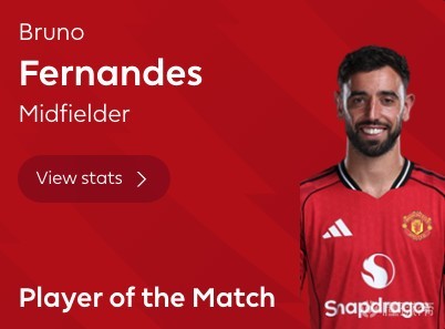 传射建功,B费当选曼联vs水晶宫全场最佳球员