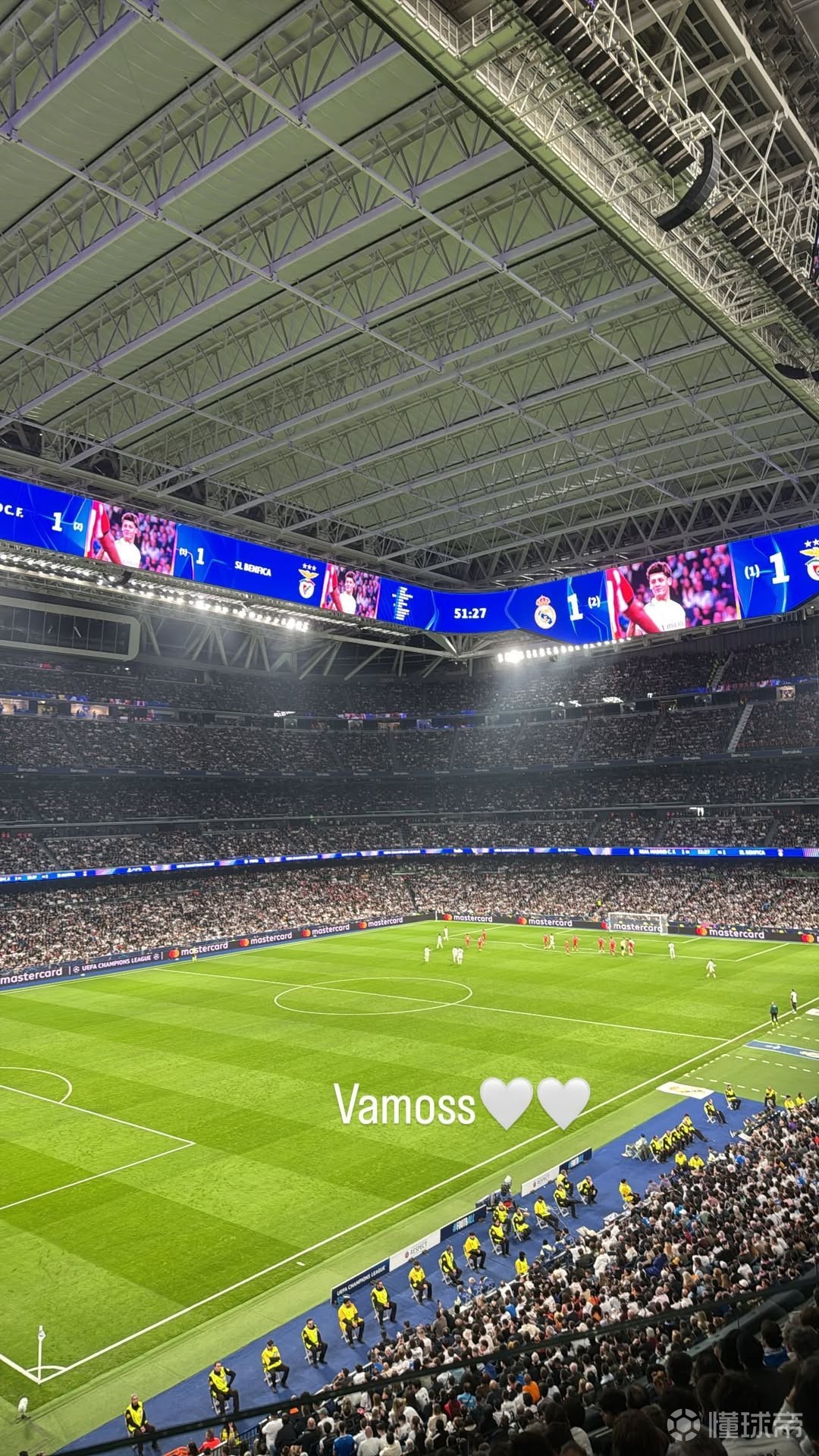 本场比赛,此前因右小腿伤势问题伤停的皇马后卫赫伊森到场观赛。在看台上,赫伊森更新了一则社交媒体动态,他拍下了比赛现场画面,并写道:“加油(Vamos)❤❤。” |